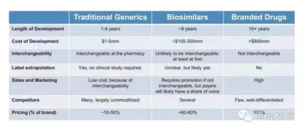 3. 生物类似药的开发比小分子仿制药昂贵,这也是决定其定价的一个主要原因。