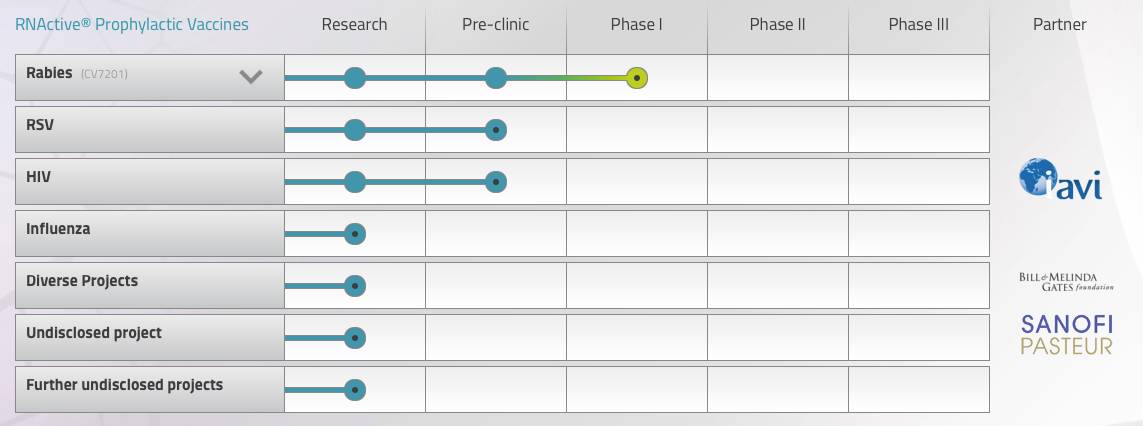 ▲预防性疫苗技术RNActive®的临床开发(图片来源:CureVac公司官网)